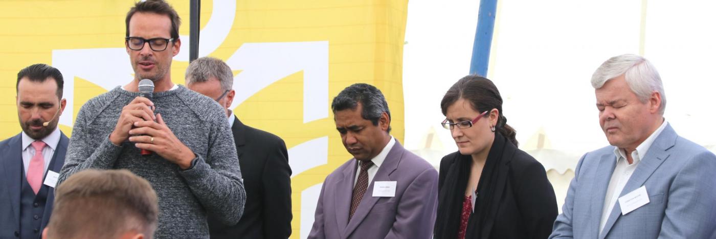 Im Zelt auf der Wiese neben der Schule durchschnitten Valdez und Mitinitiant Dr. Shafique Keshavjee das blaue Band. In der bewegenden Feier legten die Verantwortlichen dar, was zum Vorhaben führte, und blickten auf die letzten Jahre zurück. Der Rektor, Dr. Jean Decorvet, bat die anderen elf Dozenten nach vorn. Zwei Studierende beteten für sie. Als Ziel bezeichnete Decorvet die «integrale Vermittlung des Glaubens, intellektuell, spirituell und geschwisterlich». Die Gründung der Schule ist laut Dekan David Richir ein Wagnis. Mit Christus werde es gelingen. Richir schloss mit dem Gebet von Niklaus von Flüe; dieses sei für die Arbeit der HET leitend.